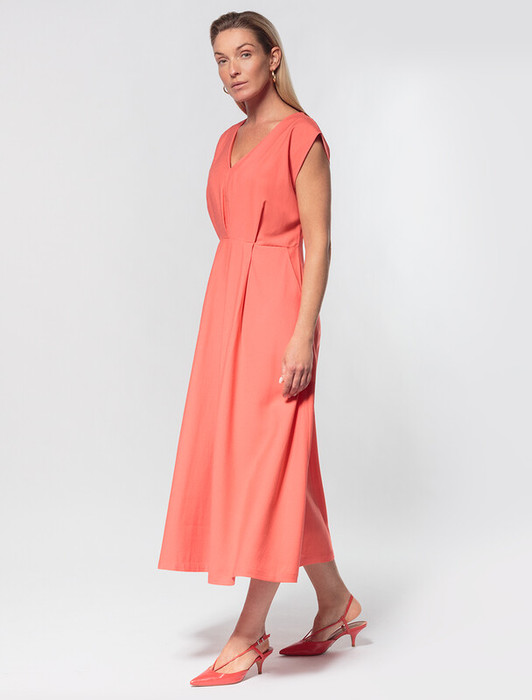 Платье выполнено из плотного лиоцелла. Модель дополнена карманами. Сзади застежка на потайную молнию. Ткань хорошо держит форму и почти не мнется. Слегка завышенная талия и пышная юбка подчеркивают романтический образ. Подходит для любой фигуры.