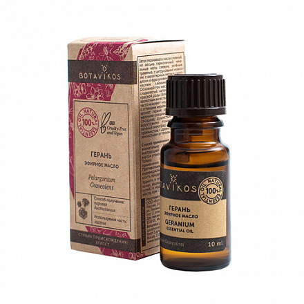 Эфирное масло герани получают не только из цветков, но и из всех остальных наземных зеленых частей растения, подвергая их перегонке с водяным паром. Запах гераниевого масла сложный, но весьма гармоничный: начальные ноты свежие, зелёные, травяные, с цитрусовыми нюансами, с характерным мятным "холодком" и едва уловимым металлическим свежим аспектом. Основной тон масла цветочный, сладковатый, напоминает аромат красной розы (благодаря своим ароматным качествам герань даже часто называют "мужской розой") с оттенками нероли, фрезии. Также аромат герани обладает выраженными специевыми аспектами (гвоздика, душистый перец) и фруктовыми тонами (груша, зелёный виноград). Базовые ноты травянистые, с древесными и чуть землистыми оттенками.