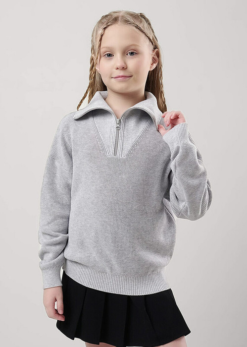 Мягкий джемпер из хлопковой пряжи приятен к телу и дарит ощущение комфорта. Свободный прямой крой с заниженной линией плеча. Модель дополнена воротником-стойкой на молнии и свободными длинными рукавами. Манжеты, стойка и пояс оформлены рельефной резинкой