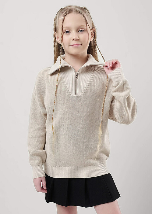 Мягкий джемпер из хлопковой пряжи приятен к телу и дарит ощущение комфорта. Свободный прямой крой с заниженной линией плеча. Модель дополнена воротником-стойкой на молнии и свободными длинными рукавами. Манжеты, стойка и пояс оформлены рельефной резинкой