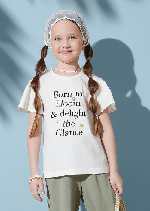 Нежная футболка из 100 % хлопка молочного цвета очаровывает с первого взгляда. Рукав-крылышко придаёт образу воздушность, стильный принт оживляет, а милые цветочки добавляют романтичный акцент.Комфортная и очаровательная-идеальный выбор для юной модницы!