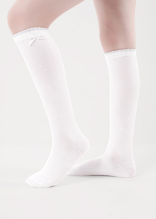 нарядные гольфы для девочки с пришивным бантиком, резинка украшена люрексом