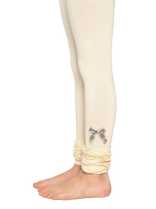 Эластичные Леггинсы из хлопка, на ножках декоративная резинка и декоративные элементы в виде бантиков, однотонные. Для девочек.