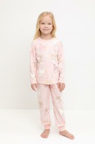 Трикотажная пижама из натурального хлопка. Футболка с короткими втачными рукавами и прямые брюки с эластичной резинкой в поясе. Оригинальные набивка и принт выполнены из стойких гипоаллергенных текстильных гипоаллергенных красителей. Изделие сохраняет цвет и форму после многократных стирок. Все трикотажные полотна производятся в соответсвии с нормами швейцарского сертификата ЭкоТекс.