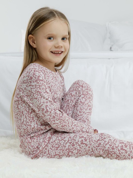 Трикотажная пижама в рубчик из натурального хлопка. Джемпер с длинными втачными рукавами и лосины с эластичной резинкой в поясе. Оригинальная набивка выполнена из стойких текстильных гипоаллергенных красителей. Изделие сохраняет цвет и форму после многократных стирок. Все трикотажные полотна производятся в соответствии с нормами швейцарского сертификата ЭкоТекс.