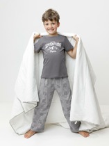 Пижама из трикотажа в рубчик для комфортного сна и отдыха. Эластичная футболка с короткими рукавами и свободные шорты с мягкой резинкой в поясе. Комплект изготовлен из 100% натурального хлопка. Материал приятен к телу, не теряет форму и позволяет коже дышать. Оригинальный рисунок выполнен из стойких текстильных гипоаллергенных красителей. Все трикотажные полотна производятся в соответствии с нормами швейцарского сертификата ЭкоТекс.