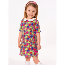 Лёгкое платье для девочки с короткими рукавами из эластичного трикотажа в рубчик. Оригинальная набивка выполнена из стойких текстильных гипоаллергенных красителей. Изделие сохраняет цвет и форму после многократных стирок.