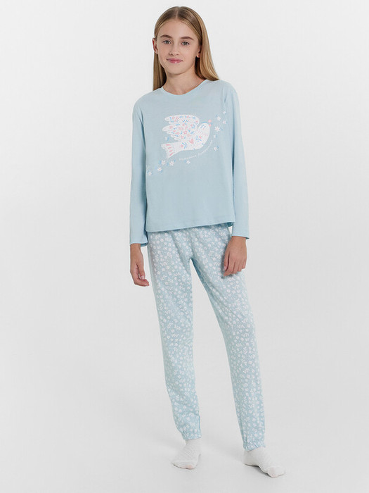 Уютный комплект для девочек из высококачественного хлопка. Модель состоит из джемпера и брюк. Горловина круглой формы. Рукава длинные. Брюки длинные, немного заужены к низу. Натуральное волокно в составе изделия отличается особой мягкостью и приятной на ощупь текстурой, бережно окутывая нежную детскую кожу. Ткань обладает превосходной гигроскопичностью, активно впитывая и отводя влагу, что помогает поддерживать оптимальный микроклимат и предотвращает перегрев. Конструкция пижамы продумана с учетом особенностей детской анатомии. Свободный, не стесняющий движений крой, эластичный пояс обеспечивают максимальную свободу и комфорт во время сна. Широкий размерный и цветовой ряд. Лучший выбор на любой сезон года!
