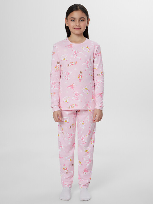 Очаровательный домашний комплект для девочки создан для комфортного отдыха и крепкого сна. В набор входит джемпер свободного кроя с длинными рукавами и удобные брюки прямого силуэта - идеальная пижама для девочки для прохладных вечеров.