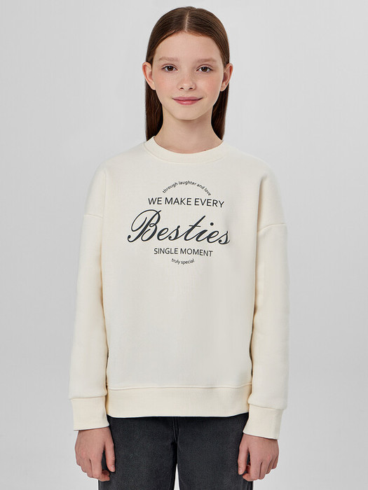 Надпись с добрым посылом подчеркивает ценность дружбы. Состав с преобладанием хлопка обеспечивает воздухообмен, а полиэстер добавляет прочности и устойчивости к деформации. Свитшот подойдет для школы, прогулок или отдыха — в нем юная модница будет чувствовать себя уютно и уверенно. Универсальный бежевый цвет легко сочетается с джинсами, юбками или спортивными брюками.