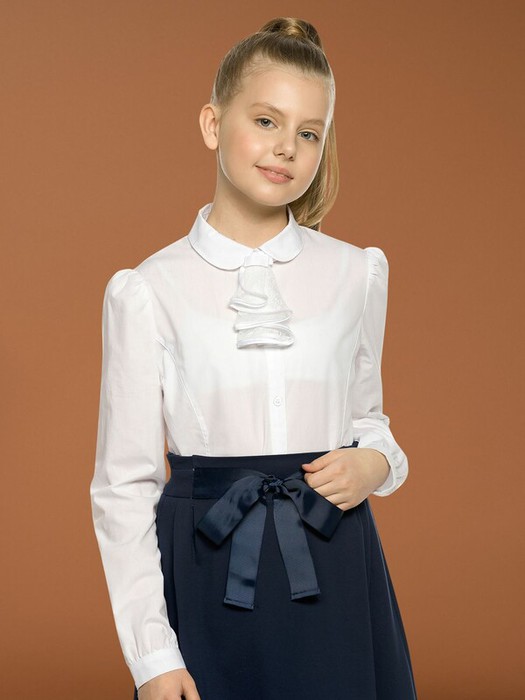 Актуальный минималистичный дизайн рубашки для девчонок, знающих толк в моде. Такая классика придется по вкусу даже неформалкам, ведь воздушное кружевное жабо под воротником легко отстегивается и остаются только чистые лаконичные формы. Состав оценят мамы: изделие не требует особого ухода, почти не мнется и легко стирается. А чуть присборенный рукав не стесняет движений маленькой непоседы.