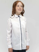 Классика, которая запомнится. Белая рубашка полуприлегающего силуэта имеет яркие акцентные вставки в виде тесьмы на манжетах и съемного декоративного банта под горловиной. Необычное прочтение воротника-стойки с аккуратно-заложенными рюшами удачно дополнено оригинальными лучами-вытачками. Актуальный образ можно сочетать с любым элементом костюма. Изделие подчеркнет характер молодой модницы и избавит мам от головной боли за школьный гардероб.