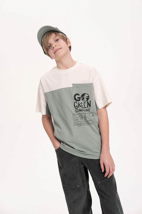 Футболка для мальчика свободного кроя - это идеальный выбор для активного ребенка. Вырез горловины обработан эластичной тканью — она прекрасно держит форму, не растягивается, при этом ребёнку удобно надевать и снимать футболку. Футболка летняя с надписями.  "Go green! Started kit: your go green started kit includes: beeswax wrap, bamboo cultery, organic cotton mesh bags, organic cotton grocery bag" - Стань зеленым! Базовый набор: твой зеленый набор включает в себя: восковую упаковку, бамбуковые приборы и трубочки, сумки и упаковки из органического хлопка, "reusable .recyclable. 100% plastic free" - перерабатываются, многоразовые.100% без пластика, "make the planet smile" - подари планете улыбку. Спортивная футболка подходит как для подростков так и для малышей в детский сад. Подходит для любого времени года.