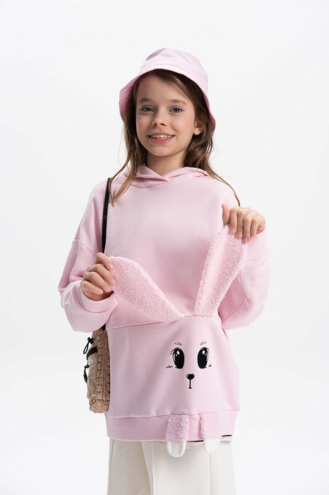 Свитшот с принтом зайчика: ушки и лапки из меха, подходит для девочки подростка. Модный джемпер из высококачественного хлопкового футера можно носить круглый год весной, летом, осенью и зимой. Кофта с капюшоном подойдет для повседневной носки на занятия, в школу, в сад и на прогулку.