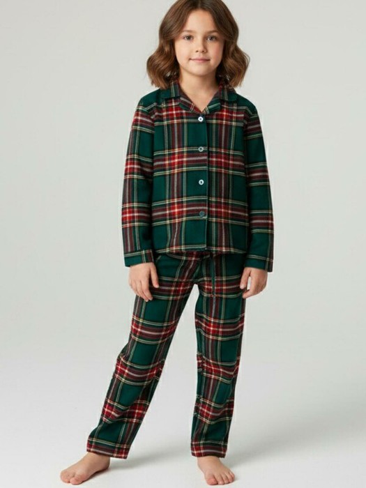 Стильная клетчатая фланелевая пижама для девочек от PlayToday — тепло, уют и современный дизайн для сна и дома.