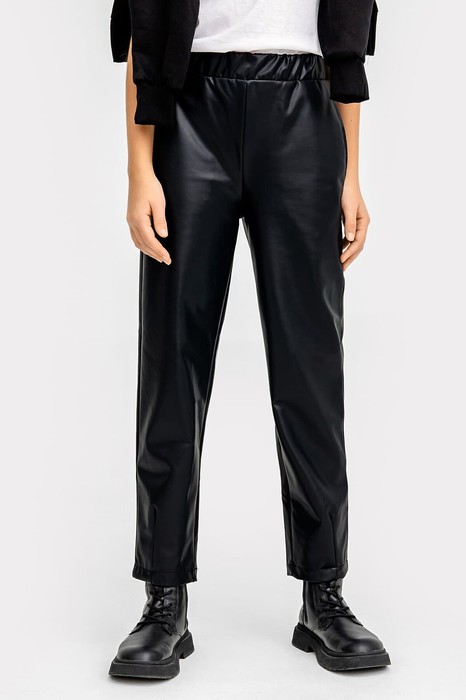 Брюки свободного силуэта. Посадка средняя. Пояс отрезной с эластичной тесьмой внутри. В боковых швах обработаны карманы. По низу брюк вытачки.