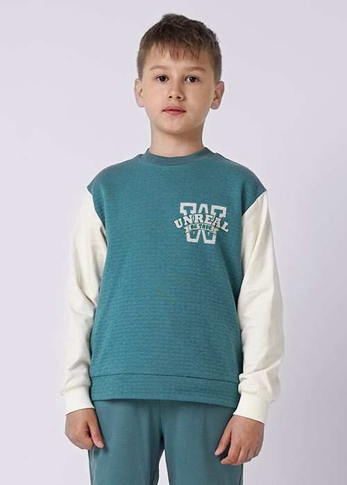 Джемпер на мальчика из фактурного капитона к контрастными рукавами из футера.