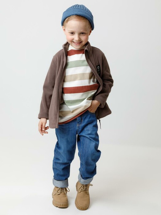 Флисовая куртка для мальчика. У изделия высокий воротник и застёжка на молнию с мягкой защитой шеи и подбородка. По бокам два кармана. Куртка сохраняет цвет и форму после многократных стирок.
