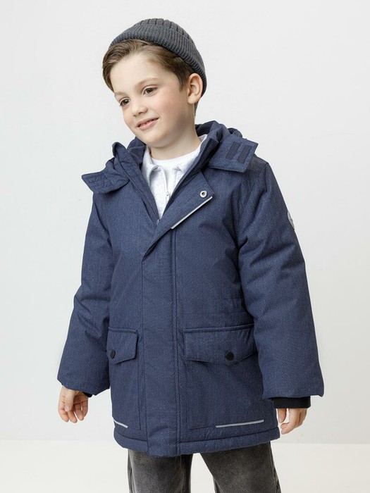 Зимняя куртка для мальчика с утеплителем SEE®: 300 г/м2. Выполнена из мембранной ткани с дополнительной тефлоновой обработкой, которая предохраняет изделие от загрязнений и отталкивает влагу. Подклад выполнен из 100% полиэстера Tricot. Куртка застёгивается на молнию и внешнюю планку с магнитными кнопками, предусмотрена защита подбородка. Съёмный капюшон на кнопках и липучках имеет эластичную утяжку со стопперами. На рукавах внутренние эластичные манжеты. Два накладных кармана с клапанами по бокам. По талии эластичная утяжка со стопперами. Во всех изделиях верхнего ассортимента для безопасности ребёнка предусмотрены светоотражающие элементы.
