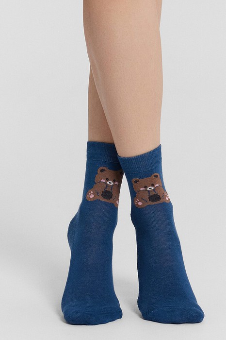 рис.2928 Детский классический носок с плюшевым следом и рисунком в виде мишек.