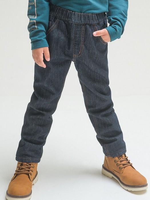 Утепленные джинсы на подкладе из флиса для мальчика. Основная ткань теплая, прочная, долго сохраняющая аккуратный вид, с большим содержанием хлопка – комфортно носить, легко ухаживать. Увеличенный объем, легкое сужение книзу – комфорт и удобство в динамике. Широкая резинка по линии талии отлично сидит и не натирает, объем регулируется внутренним шнуром – брюки не спадают, ремень не требуется. Имитация гульфика спереди. Удобные карманы для важных мелочей. Заклепки, декоративные строчки оранжевой нитью – нестареющая джинсовая классика. Джинсы прекрасно комбинируются с худи, толстовками, свитшотами. Незаменимы для создания стильного повседневного образа.