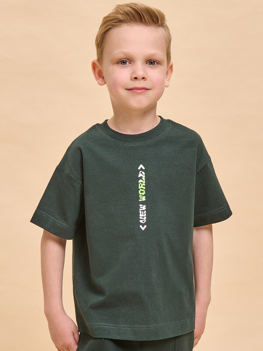 Детская футболка для мальчика. Комфортная майка умеренного оверсайз-объёма со спущенным плечом подарит ребёнку свободу движений. Вырез горловины обработан эластичной рибаной (ткань в рубчик) — она отлично держит форму, не растягивается, при этом ребёнку удобно надевать и снимать футболку. Изделие неприхотливо в уходе. Футболка детская с принтом с трендовой градиентной растяжкой. Надписи переводятся: «из будущего», «новый мир». Принт эластичный и устойчивый, хорошо переносит многочисленные стирки. В составе ткани 100% хлопка — майка мягкая, воздухопроницаемая, приятная на ощупь. Футболка для мальчиков выполнена в универсальной расцветке, её легко сочетать с различными брюками, джинсами. Детские футболки с принтом подходят как для маленьких мальчиков, так и для подростков. Оверсайз-футболка для мальчика подходит для любого времени года, её можно носить как летом, так и в холодное время года в качестве среднего слоя одежды. Помните о правильном уходе за изделием: рекомендуется стирать при температуре не выше 30 °C, без предварительного замачивания, с изнанки. Это поможет сохранить качество и цвет футболки на длительное время.