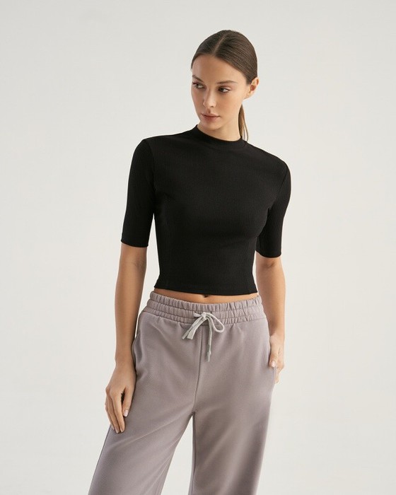 Укороченная футболка, облегающего силуэта. Притачная стойка.