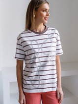 Свободная футболка в широкую полоску с принтом из премиального хлопка с эластано