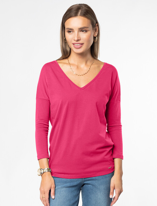 Совместные покупки Магнитогорск Женская одежда Джемперы, свитеры, водолазки — 21.04 Vilatte Джемпер из премиального хлопка с эластаном D49.957 вива_маджента