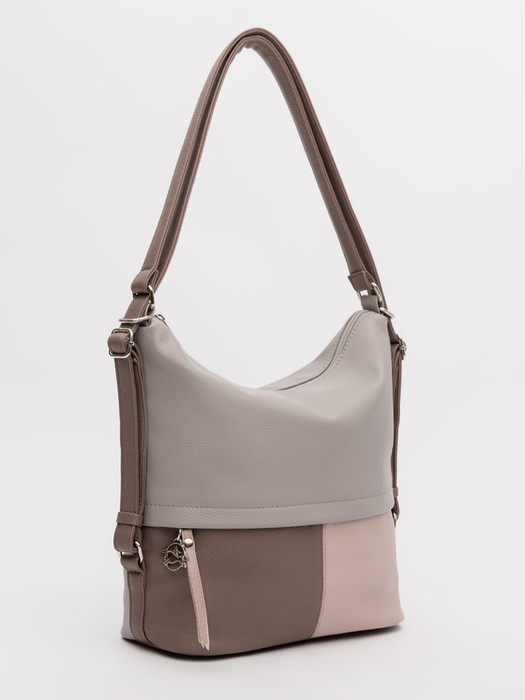 Модель легко меняет форму, позволяя носить её на плече, через плечо или как рюкзак — в зависимости от ситуации. Сочетание нескольких цветов делает сумку стильным акцентом в любом образе. Внутри — продуманная организация: основной отдел, карман на молнии для ценных вещей, отделение для телефона и дополнительный большой карман. Функциональность и неординарный дизайн в одной сумке — идеальный выбор для тех, кто ценит комфорт и возможность всегда иметь под рукой всё необходимое.