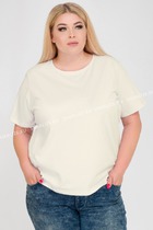 Майка для дома и отдыха из трикотажного полотна кашкорсе, с широким плечом. Обтачки по горловине и пройме. По переду контрастные резы. По горловине, пройме и резам контрастный застил. Спереди принт.