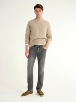 Размер MAXI. Мужской вязаный джемпер с V-образным вырезом горловины в базовом ассортименте. Целостность модели придают двойная контрастная горловина, декоративная полосатая тесьма и провязаная обтачка по спинке. Модель дополняет металлофурнитура по низу.