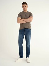 Мужской вязаный джемпер с круглым вырезом горловины в базовом ассортименте. Модель завершенная благодаря двойной контрастной горловине, декоративной полосатой тесьме и провязаной обтачке по спинке. Модель дополняет металлофурнитура по низу.