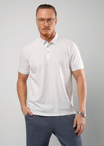 Футболка поло с манжетами и воротником, из фактурного полотна, с содержанием хлопка и полиэстера. Функциональная планка на 3 кнопки. Отличное решение для похода на работу и создания образа в стиле casual.