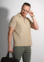 Футболка поло из фактурного полотна с содержанием хлопка, с манжетами. Функциональная планка на молнии. Модель дополнена нашивкой на спинке. Отличное решение для похода на работу и создания образа в стиле casual.