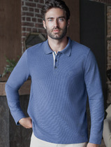 Лонгслив из мягкого фактурного трикотажа с плетеным воротником поло на пуговицах
