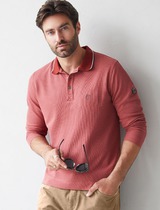 Лонгслив из фактурного трикотажа с плетеным воротником поло с застежкой на пугов
