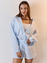 Укороченные шорты, низкая посадка. Притачной отстроченный пояс со шнурком. Боковые карманы. На правой задней половинке шорт накладной карман. Декор вышивка на левой детали переда
