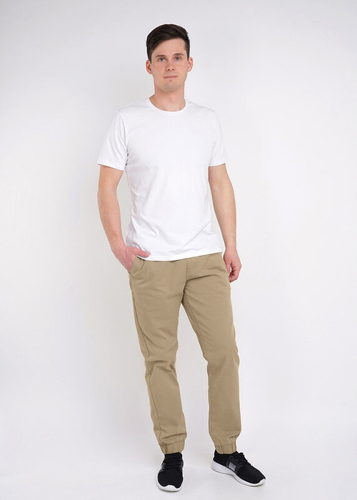 Мужские хлопковые джоггеры средней посадки на резинке по низу. Удобство обеспечивается за счет карманов, а регулировка талии благодаря шнуру с наконечниками. Такие брюки можно сочетать в спортивном или повседневном образе с любыми футболками.