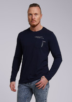 Мужской лонгслив из трикотажного фактурного полотна с длинным рукавом и декоративной планкой на пуговицах. Контрастная отделка горловины акцент. Удобная и стильная модель для повседневного образа.