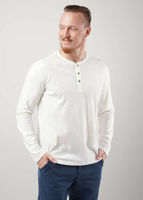 Лонгслив мужской с длинным рукавом, округлой горловиной на планке из фактурного полотна ""флам"". Изделие дополнено имиджевой фурнитурой. Данная модель прекрасно комбинируется с джинсами или шортами благодаря своей универсальности.