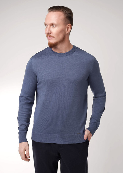 Классический вязаный джемпер с круглой горловиной. Изделие изготовлено из смесовой пряжи с содержанием хлопка. Данный джемпер удачно впишется в повседневный гардероб современного мужчины, привнося тепло, комфорт и элегантность одновременно.