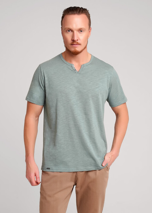 Футболка мужская с округлой горловиной и планкой из фактурного полотна флам. Данная модель прекрасно комбинируется с джинсами или шортами. Модель дополнена имиджевой фурнитурой. Отличное решение на лето для прогулок с друзьями или поездки на отдых.
