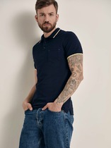 Мужская базовая футболка-поло. Модель дополнена вязанными отделками, фирменной фурнитурой и вышивкой. Изделие отлично сочетается с любыми брюками или джинсами.