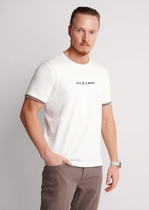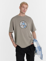 Фуфайка с коротким рукавом среднего объема, круглым вырезом горловины, которая оформлена обтачкой из рибаны.
