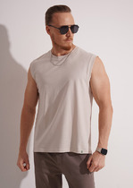 Майка с широким плечом, круглым вырезом горловины, свободного кроя. С окантовкой из рибаны по горловине и рукаву. Плотность:130-140 гр/м2