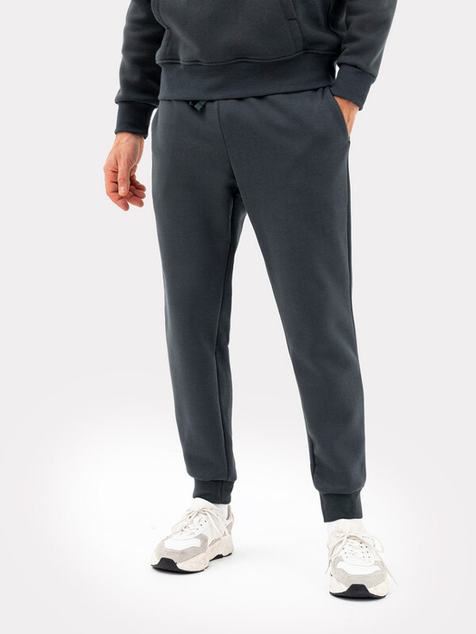 Стильные брюки из трикотажного футера с теплым подчесом. Силуэт зауженный, штанины с манжетами. Есть удобные боковые карманы. В поясе – эластичная тесьма и шнурок-затяжка. Просто, комфортно, актуально!