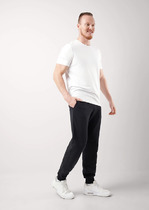 Брюки из трикотажного футера с теплым подчесом. Силуэт свободный. Линия талии классическая. Сидение немного спущено. Есть удобные боковые карманы. Пояс с эластичной тесьмой и регулировочным шнурком-затяжкой. Низ брюк подогнут, с эластичной тесьмой. Удобные брюки – рекомендуем!