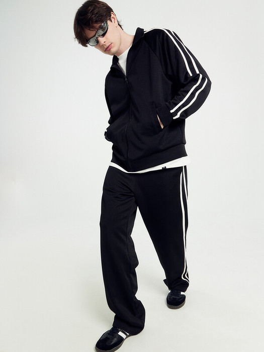 Боковой шов смещен в сторону переда. По бокам настрочены лампасы из кулирки.
