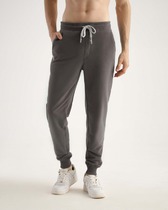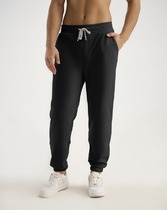 Брюки прямые, свободные. Пояс отрезной с эластичной тесьмой внутри. С внешней стороны пояса пробиты петли и втянут шнур (8КXW-1 8мм) с узлом на концах. В боковых швах обработаны карманы, подкладка кармана из основного полотна. На левой передней половинке проложена декоративная строчка - имитация гульфика. На задней правой половинке накладной карман. Нижние срезы брюк обработаны швом вподгибку с эластичной тесьмой внутри.